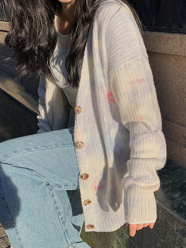 瀟灑胖mm顯瘦星空扎染針織開衫女裝